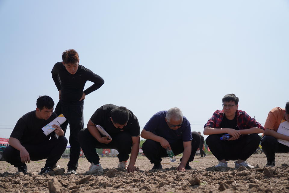 播种过后,与会者认真查看、对比分析每款播种机械的作业效果,现场开展经验交流。技术人员结合机具实物向与会者详细介绍每款产品的性能特点和应用场景,系统讲授粮油作物机械化生产模式和技术要领。